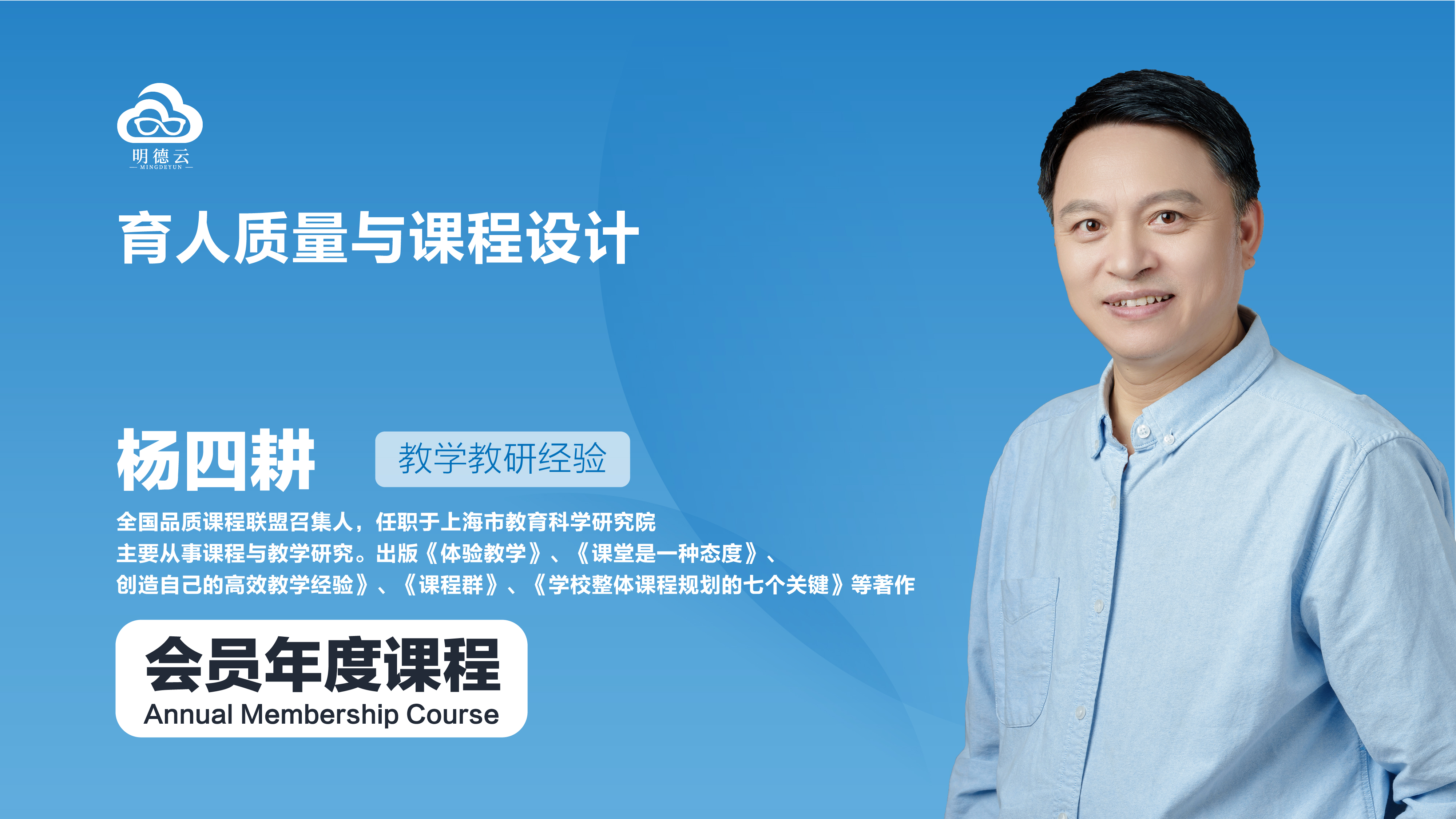 杨四耕,全国品质课程联盟召集人,任职于上海市教育科学研究院,主要从事课程与教学研究。出版《体验教学》、《课堂是一种态度》、《创造自己的高效教学经验》、《课程群》、《学校整体课程规划的七个关键》等著作。